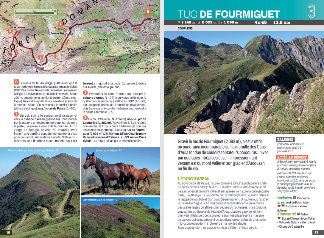 Adossées à la frontière espagnole, les Pyrénées ariégeoises offrent un concentré de montagne préservée où la nature règne en maître. Entre forêts profondes, estives lumineuses et crêtes granitiques, ce territoire invite à la randonnée sous toutes ses formes. Ici, le randonneur chemine au cur du Parc naturel régional des Pyrénées ariégeoises, croise l'ombre des isards, traverse des villages aux toits d'ardoise et découvre un patrimoine pastoral encore bien vivant. Partez à l'ascension des silhouettes emblématiques qui veillent sur les vallées : le Mont Valier, seigneur du Couserans, ou encore le Pic des Trois Seigneurs, belvédère prisé des randonneurs. Au pied de ces géants, une constellation de lacs et d'étangs glaciaires apporte fraîcheur et sérénité. Étang d'Izourt, étangs de Bassiès, étang de Pinet, lac d'Aygue-Longue ou encore l'incontournable étang de Laurenti : autant de miroirs d'altitude où se reflètent les cimes, havres de paix propices à la contemplation et aux rencontres avec la faune montagnarde.
